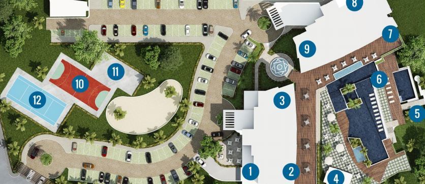 Dodatkowe usługi: Sklep convenience, prywatny dostęp do plaży, concierge, ochrona 24/7, darmowe Wi-Fi.
