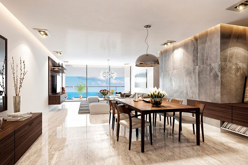 Luksusowe wykończenie: Apartamenty wyposażone są w marmurowe podłogi, drewniane drzwi, importowane armatury, nowoczesne meble kuchenne, marmurowe i granitowe blaty w łazienkach i kuchniach oraz wysokie sufity (2,80 m w standardowych apartamentach, 3,30 m w penthouse’ach).