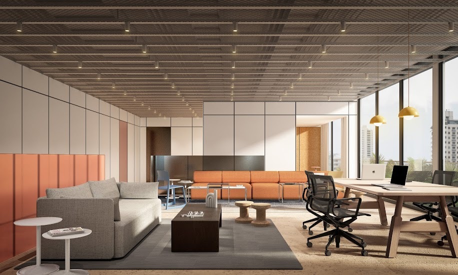 Strefa lounge: Elastyczna przestrzeń do pracy zdalnej, spotkań, konferencji lub coworkingu.