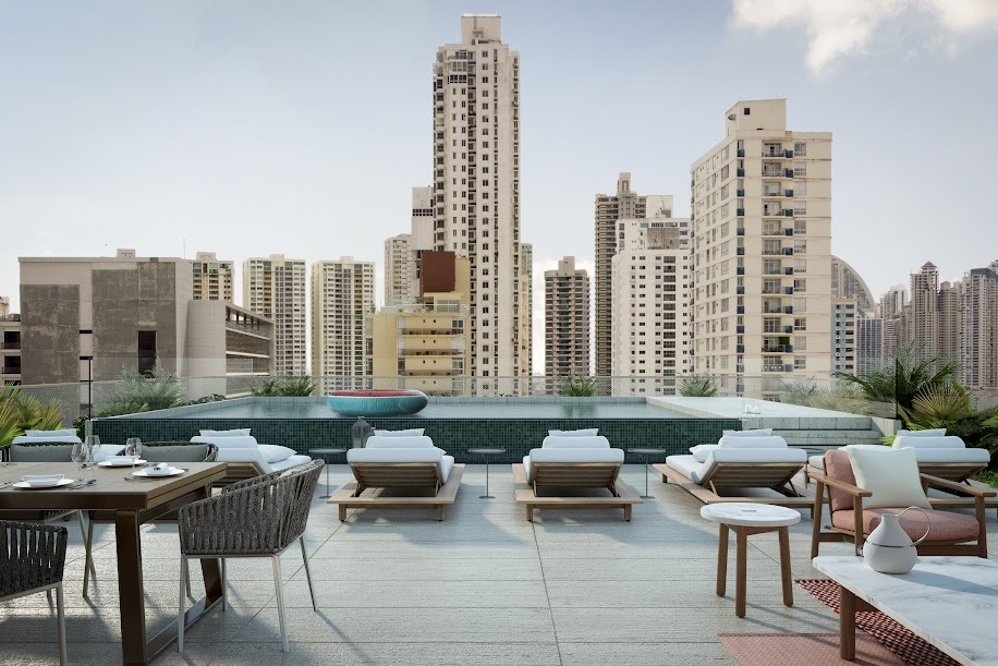 Taras widokowy: Oaza spokoju na najwyższym piętrze z panoramicznym widokiem na panoramę Panama City i okoliczną zieleń.