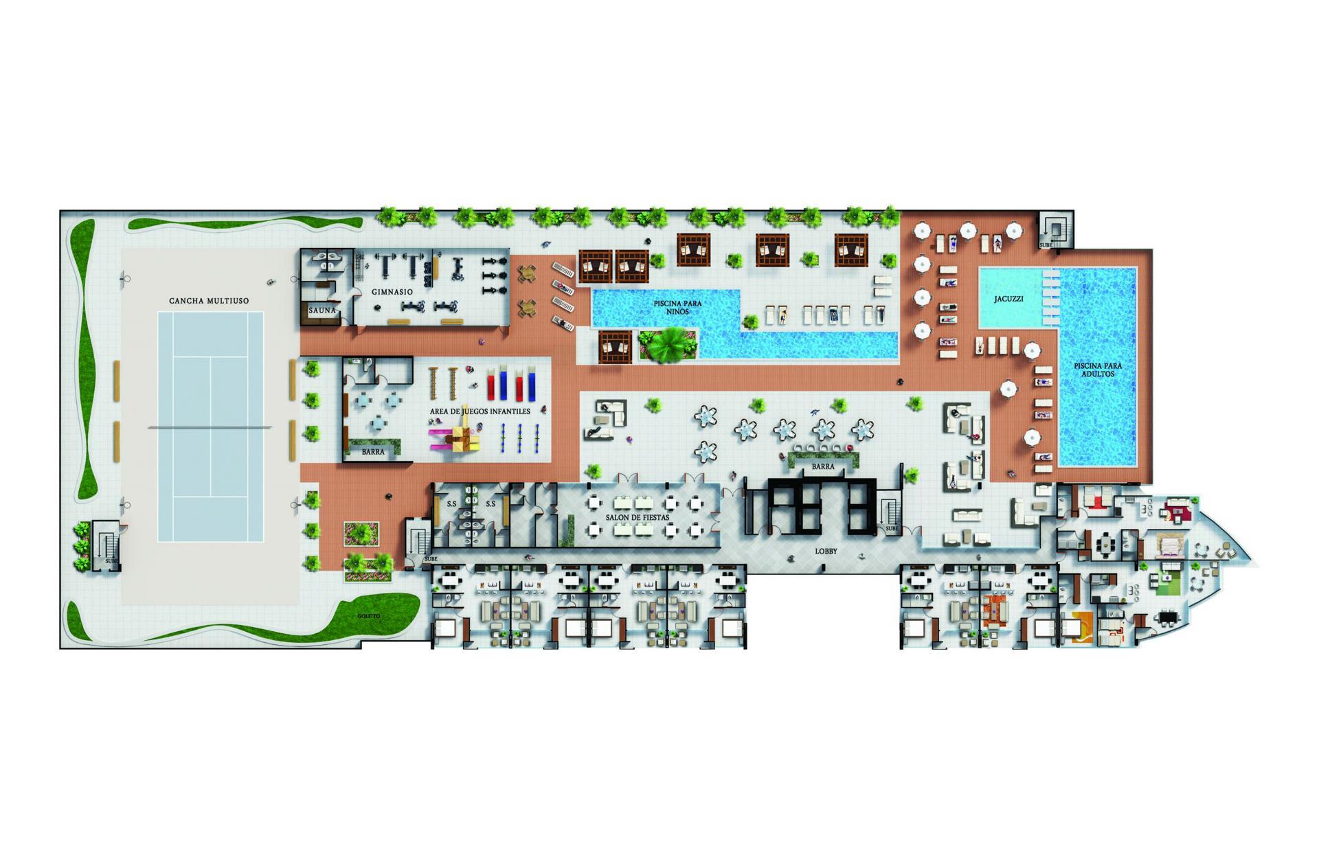 Royal Palm oferuje dwie wyjątkowe strefy wspólne, zaprojektowane z myślą o rodzinach i aktywnym stylu życia: