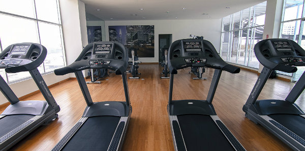 Nowoczesna, w pełni wyposażona siłownia z sauną dla kobiet i mężczyzn.